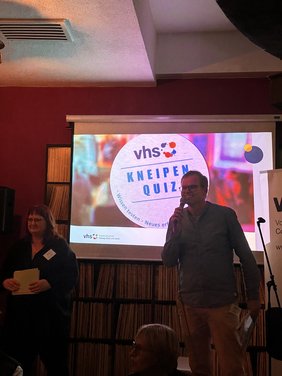 Mit viel Charme und Humor führten Daniela Scheller (Koordination Landkreis) und Oliver Heß (Programmbereich Kultur) durch den Abend, unterstützt vom tollen vhs-Team, das die Planung und Organisation übernommen hatte. Besonders schön: Von jedem Programmbereich der vhs war etwas dabei, sodass die Quizfragen die Vielfalt des Angebots widerspiegelten.